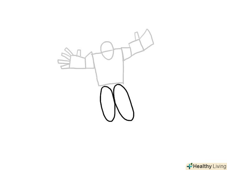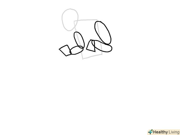 Намалюйте два витягнутих овалу для верхньої частини ніг.
