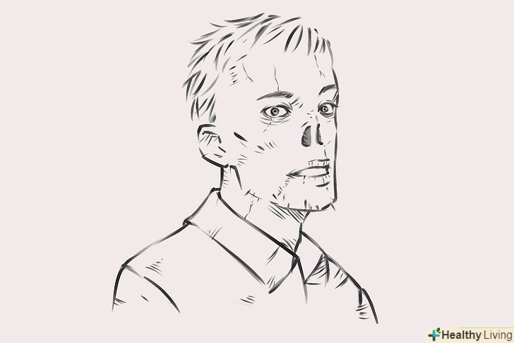 Додайте такі деталі, як грубі волосся, за допомогою невеликих скошених штрихів, які схожі на нечесані волосся. намалюйте очі округлої форми, всередині ока намалюйте гурток очного яблука. Накидайте зламаний ніс, стирчить виличну кістку і, можливо, ще трохи неголеної щетини.