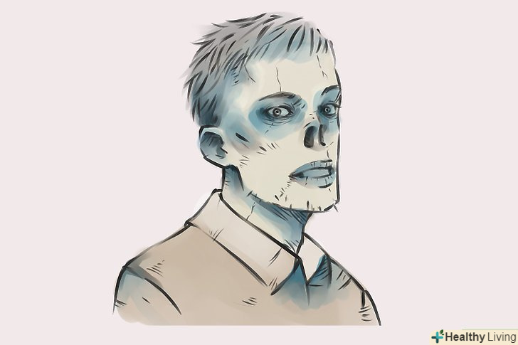 Додавання блакитних тонів, особливо навколо очей і інших западин на обличчі надає зомбі більш блідий і страхітливий вигляд.