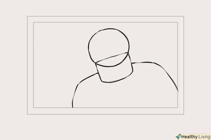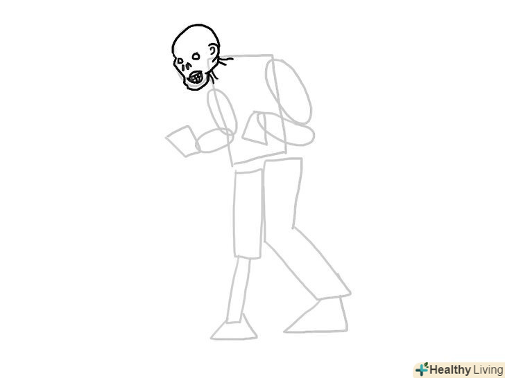 Грубо накидайте контури зомбі. для голови використовуйте коло, прямокутник - для щелепи, а вигнуті криві – для плечей.
