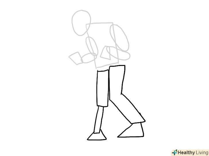 Намалюйте з'єднані між собою прямокутник ніг і трапеції ступень.