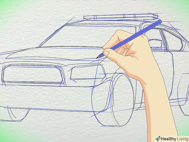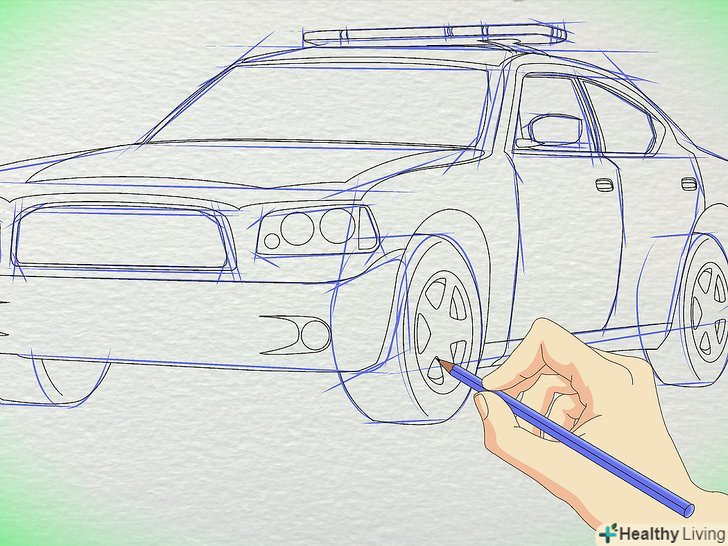 Додайте деталі фар, коліс і сирени. також додайте незначні деталі автомобіля, наприклад, склоочисник, пороги і підведення газу.
