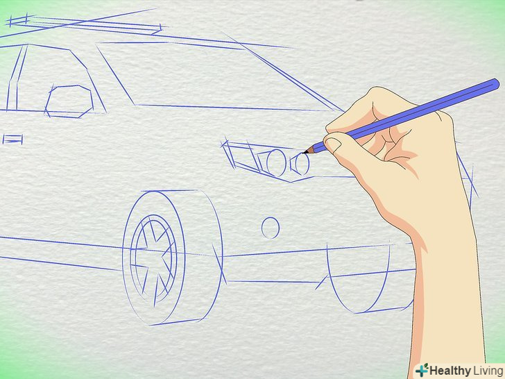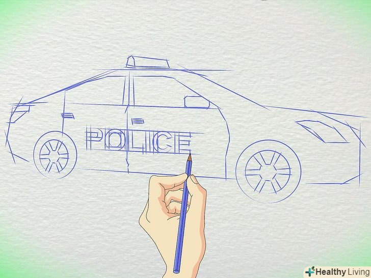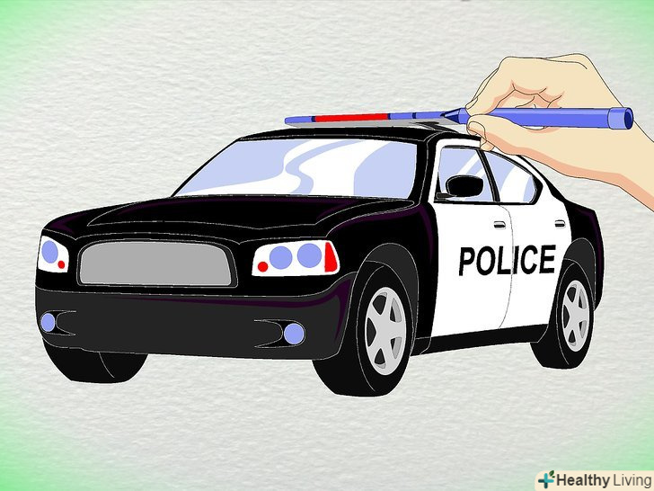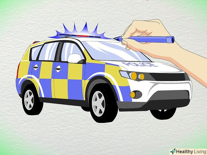 Намалюйте фари. * намалюйте передні і задні фари.* Маленькі круглі фари на дверях машини.* Миготлива сирена на даху.