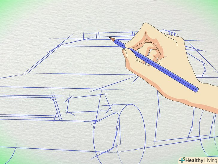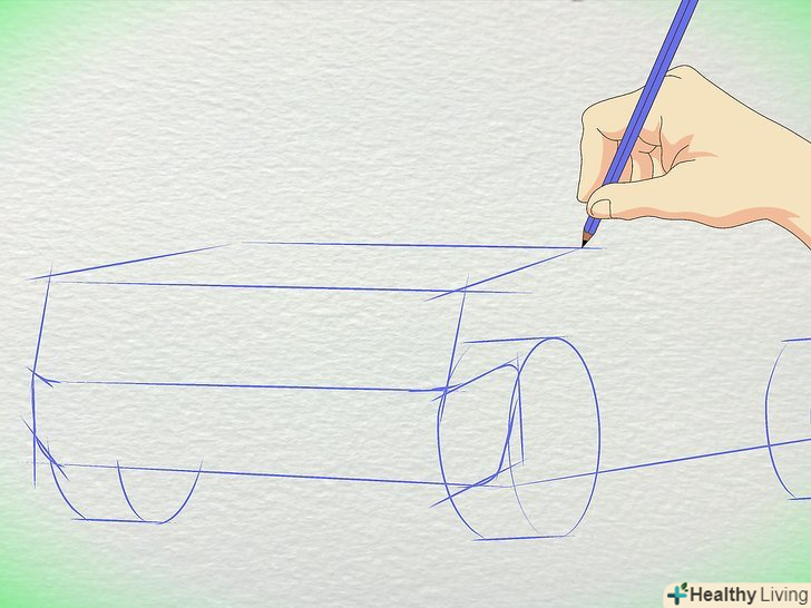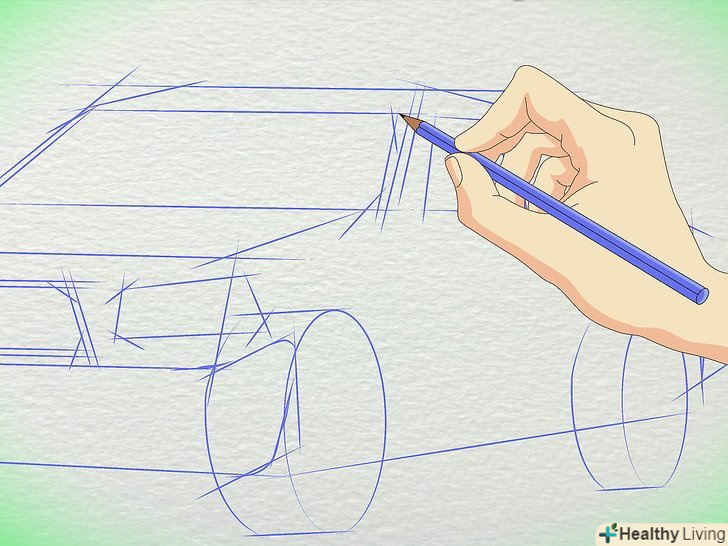 Намалюйте лінію, що йде позаду коліс, щоб завершить контур машини.