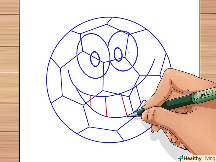 У нижній частині м'яча під очима двома вигнутими лініями намалюйте посмішку персонажа.