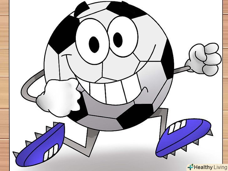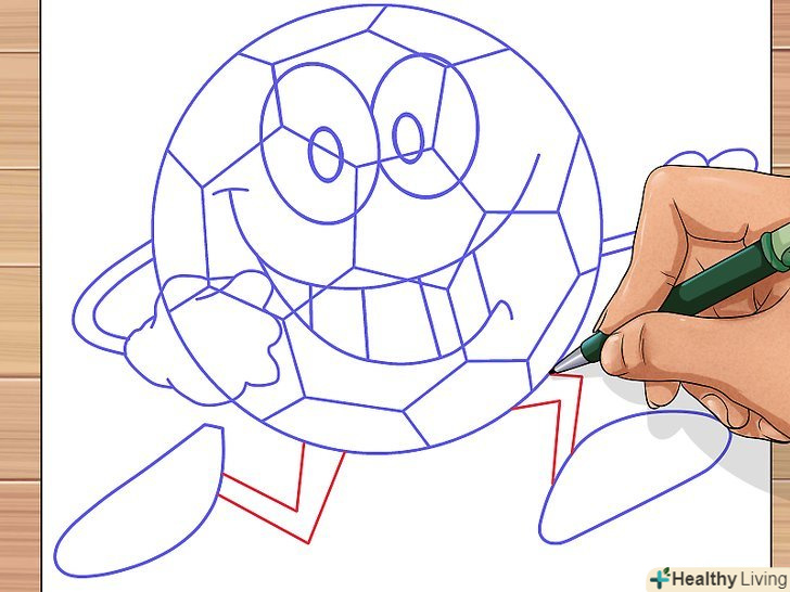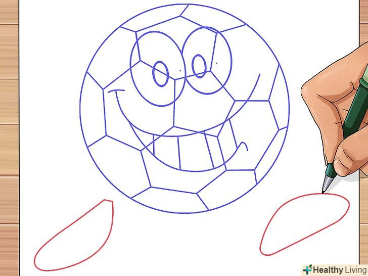 Внизу окремо від кола м'яча зобразіть дві витягнуті ступні ніг.
