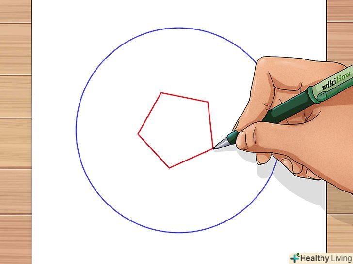 По центру кола з невеликим поворотом покажіть п'ятикутник.