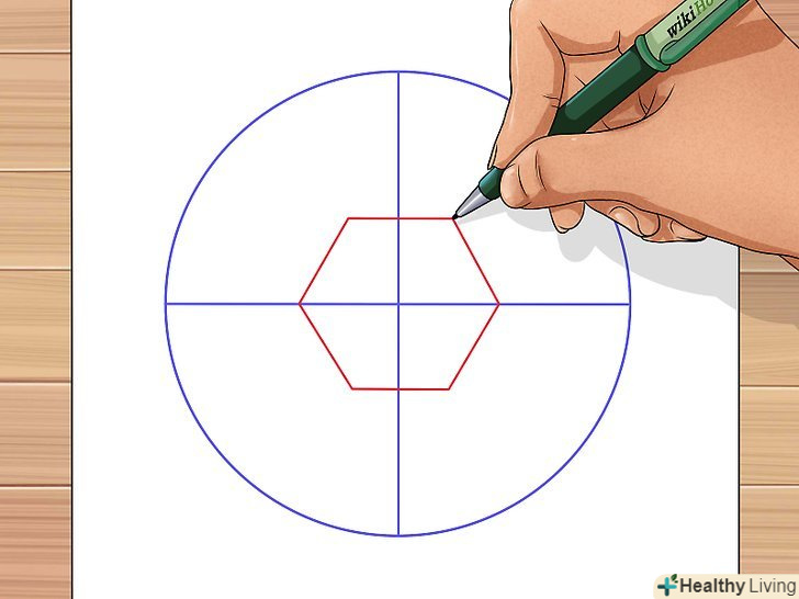 По центру зобразіть шестикутник помірних розмірів, який буде служити орієнтиром для подальшого малювання м'яча.