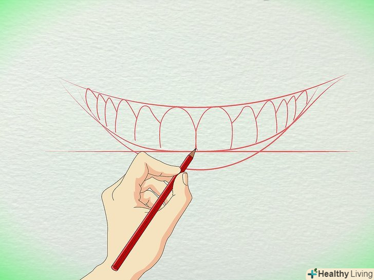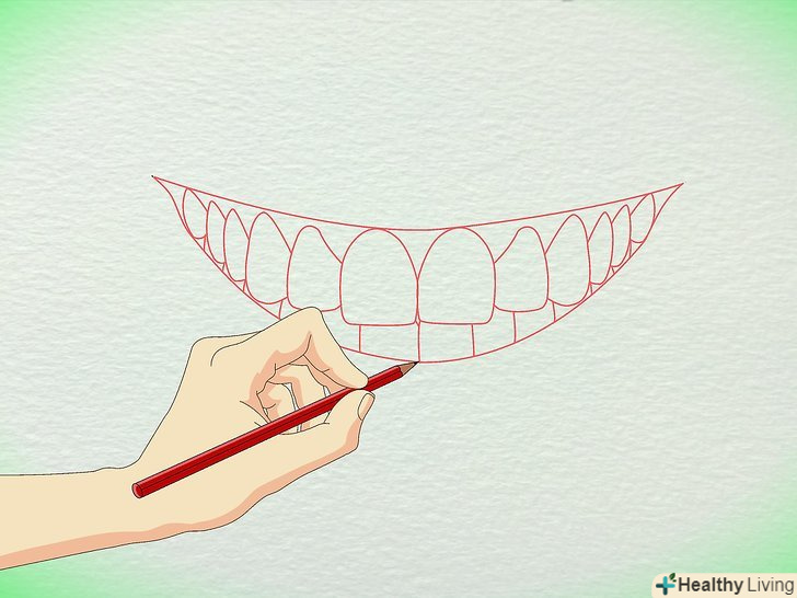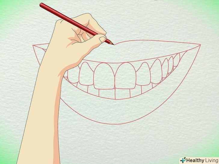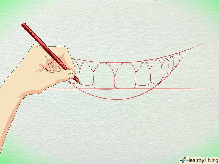Зовсім легко накидайте лінії зверху вниз від краю ясен. з кожної точки ясен намалюйте дуже легкі лінії, які зустрінуться з намальованою раніше "лінією зубів". Ці лінії пізніше будуть видалені, тому дуже важливо наносити їх без натиску.