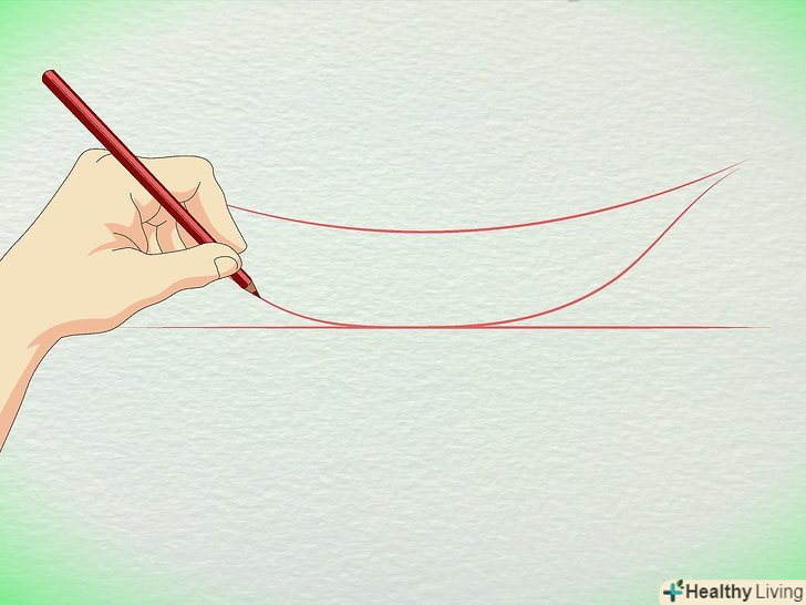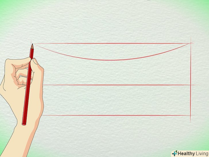 З'єднайте два верхніх кута великого прямокутника однієї безперервної кривої.- *намалюйте ще одну лінію трохи нижче середини прямокутника. Пізніше в малюнку вона буде служити в якості"лінії зубів".