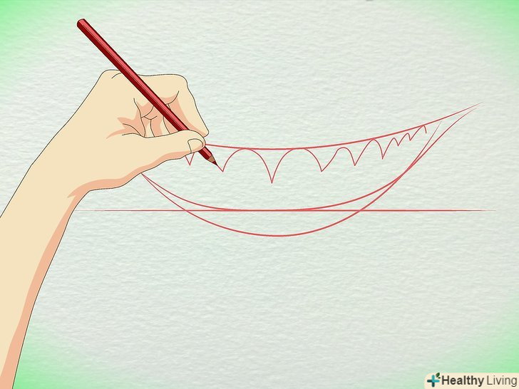 Злегка намалюйте нижні зуби такими, як вони зображені на еталонному фото. Пам'ятайте, що нижні зуби менше в ширину, ніж верхні і, отже, не повинні збігатися з верхніми зубами.