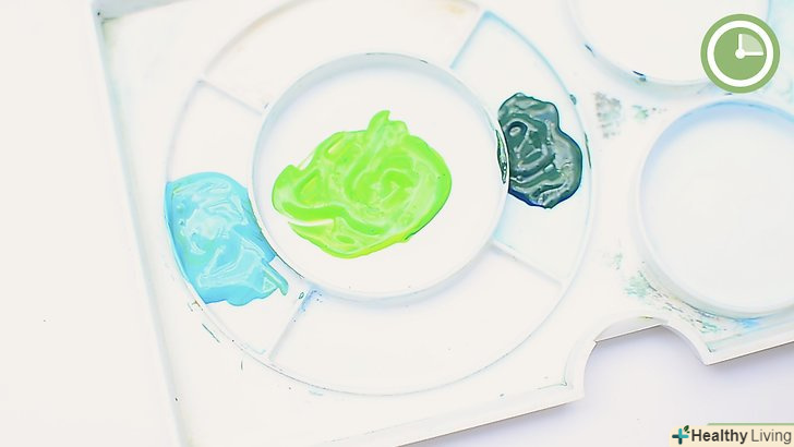 - Змішуйте мастихіном різні фарби, щоб отримати нові колірні комбінації. Художники рідко використовують акрилові фарби у вихідному вигляді безпосередньо з тюбика. Щоб отримати фарбу потрібного вам кольору, капніть в центр палітри дві краплі фарби різних кольорів і змішайте їх мастихіном або пензлем. Це дозволить вам отримати нові насичені відтінки кольору, щоб надати вашій картині унікальний вигляд. [8]