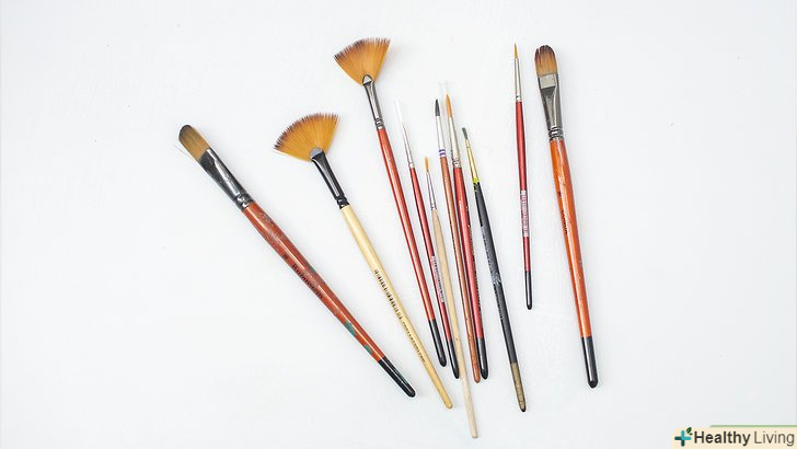Купуйте 5-8 художніх пензлів для малювання в різних стилях. якщо малювати тільки однією пензлем, буде важко домогтися повного розмаїття візуальних ефектів, які можна створити акриловими фарбами. Тому купите відразу кілька пензликів різного стилю. Нижче наведено список найбільш поширених видів кистей для акрилу: [4]- Круглі Кисті (для промальовування ліній і деталей);