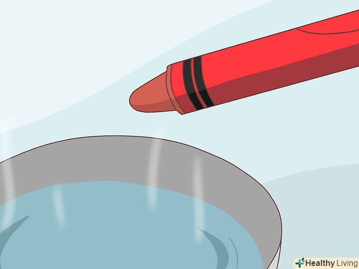 Опустіть затупився кінчик воскової крейди в миску в гарячою водою. залиште крейду у воді на кілька хвилин. Якщо ви не хочете тримати воскову крейду, прив'яжіть до нього шматок мотузки, інший кінчик мотузки закріпіть на олівці. Покладіть дві стопки книг по краях мискою з гарячою водою, покладіть олівець на стопки книг як на опори. Воскова крейда, прив'язаний мотузкою, повинен бути занурений в гарячу воду.