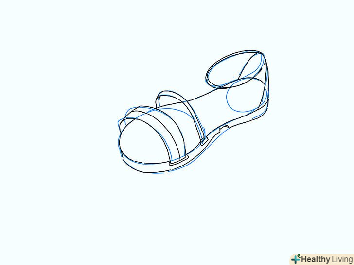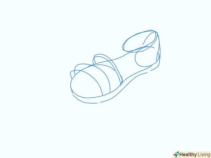 Намалюйте ремінці для пальців, зобразивши дві криві на кожен ремінець, прикріплені кінцями до сандалій. крім того, намалюйте овал, прикріплений до сандалі над колом з першого кроку і зображує ремінець для п'яти.