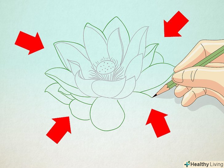 - Квітка лотоса дуже часто плутають зі схожим по виду, але абсолютно іншим іншим рослиною, водяною Лілією ( Nymphaea ). Будьте обережні, щоб не наплутати при малюванні квітки лотоса.