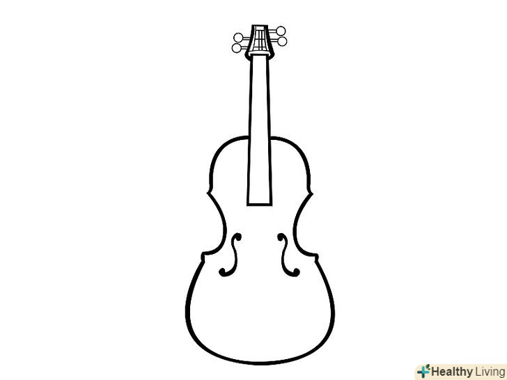 Тепер намалюйте велику арку внизу, що з'єднує Нижні напіварки. у центрі фігури, яка у вас вийшла, намалюйте праворуч і ліворуч дві лінії, що нагадують вигнуту англійську букву "s". Не забудьте залишити місце для грифа. Тепер намалюйте велику арку внизу, що з'єднує Нижні напіварки. у центрі фігури, яка у вас вийшла, намалюйте праворуч і ліворуч дві лінії, що нагадують вигнуту англійську букву "s". Не забудьте залишити місце для грифа.