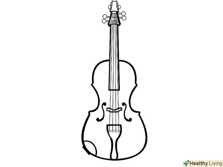 Внизу з лівого боку скрипки намалюйте півколо, який з'єднується з маленьким трикутником внизу. Внизу з лівого боку скрипки намалюйте півколо, який з'єднується з маленьким трикутником внизу.