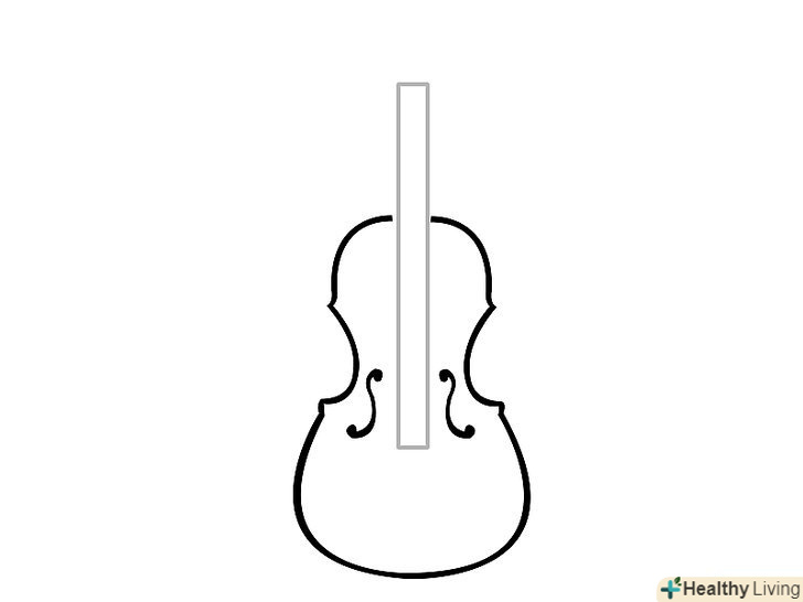 Намалюйте підставку між двома лініями у вигляді букв "s" (намалюйте її у формі трохи вигнутого прямокутника). потім намалюйте фігуру, що нагадує трикутник, яка з'єднується зі струнами і доходить до нижнього краю скрипки. На цій фігурі намалюйте чотири невеликих кола (струнотримач). Намалюйте підставку між двома лініями у вигляді букв "s" (намалюйте її у формі трохи вигнутого прямокутника). потім намалюйте фігуру, що нагадує трикутник, яка з'єднується зі струнами і доходить до нижнього краю скрипки. На цій фігурі намалюйте чотири невеликих кола (струнотримач).