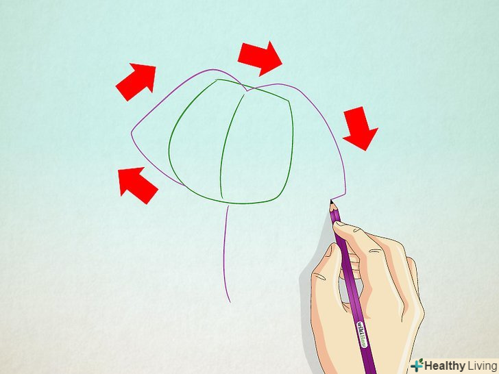 Намалюйте фігуру, за формою нагадує гаманець, яка буде основою для голови. проведіть горизонтальну і вертикальну лінії через цю фігуру. Намалюйте фігуру, за формою нагадує гаманець, яка буде основою для голови. проведіть горизонтальну і вертикальну лінії через цю фігуру.