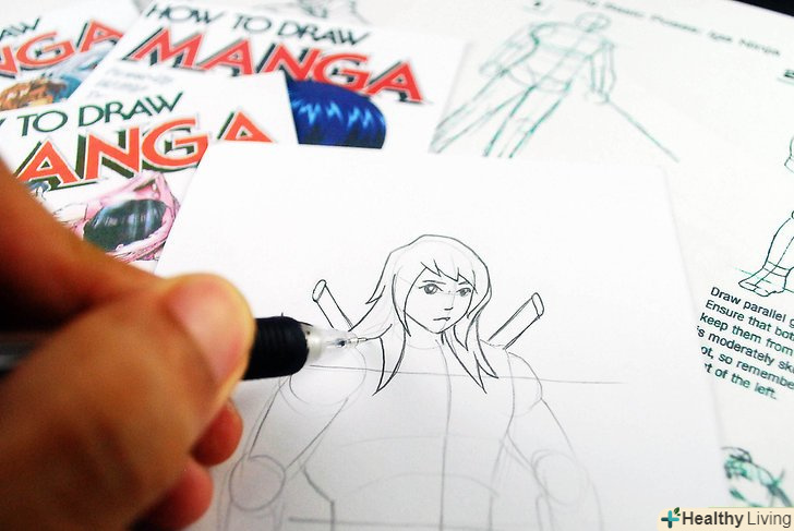 При наявності в книзі покрокової інструкції для малювання не варто просто переходити до останньої картинці і копіювати її. це обман, шлях до того, щоб почати повторювати манеру письма художника книги. Приступите до роботи з кола, голови, ліній очей і тому подібного. Ви навіть можете намалювати героя в тій же позі, що і в книзі, тільки Створюйте свій власний персонаж . При наявності в книзі покрокової інструкції для малювання не варто просто переходити до останньої картинці і копіювати її. це обман, шлях до того, щоб почати повторювати манеру письма художника книги. Приступите до роботи з кола, голови, ліній очей і тому подібного. Ви навіть можете намалювати героя в тій же позі, що і в книзі, тільки Створюйте свій власний персонаж .