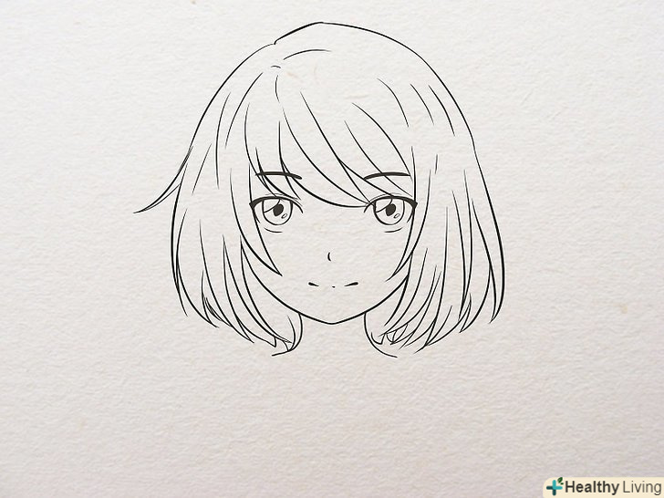 Намалюйте персонажуЗабавну зачіску . зачіски персонажів в стилі аніме і манга можуть відрізнятися великою різноманітністю, тому виберіть таку, яка, на ваш погляд, найкраще підходить для зображуваного героя. Чи не промальовуйте кожен локон, просто позначте загальний вигляд зачіски. Не надто налягайте на олівець, щоб при необхідності стерти непотрібні лінії і внести зміни. Після того як ви позначите зачіску в загальних рисах, зітріть всі частини голови, які покриті волоссям, щоб їх не було видно. [13] Намалюйте персонажуЗабавну зачіску . зачіски персонажів в стилі аніме і манга можуть відрізнятися великою різноманітністю, тому виберіть таку, яка, на ваш погляд, найкраще підходить для зображуваного героя. Чи не промальовуйте кожен локон, просто позначте загальний вигляд зачіски. Не надто налягайте на олівець, щоб при необхідності стерти непотрібні лінії і внести зміни. Після того як ви позначите зачіску в загальних рисах, зітріть всі частини голови, які покриті волоссям, щоб їх не було видно. [13]- В стилі аніме або манга волосся зазвичай поділяють на локони, кожен з яких закінчується в точці. Перегляньте різні зображення, щоб зрозуміти, як можна намалювати волосся свого персонажа.