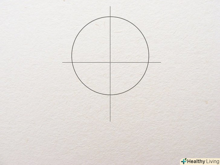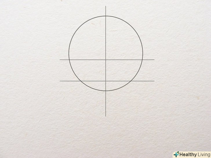 Намалюйте на аркуші паперу коло з проходить через його середину вертикальною лінією. використовуйте олівець, щоб у разі помилки можна було стерти лінії. Тонкою лінією намалюйте коло в центрі листа так, щоб залишилося місце для різних деталей. Знайдіть центр кола і проведіть через нього тонку пряму лінію від верхнього краю кола до нижньої частини листа, щоб позначити середину особи. [1] Намалюйте на аркуші паперу коло з проходить через його середину вертикальною лінією. використовуйте олівець, щоб у разі помилки можна було стерти лінії. Тонкою лінією намалюйте коло в центрі листа так, щоб залишилося місце для різних деталей. Знайдіть центр кола і проведіть через нього тонку пряму лінію від верхнього краю кола до нижньої частини листа, щоб позначити середину особи. [1]- Проведіть досить велике коло, щоб в нього помістилися різні деталі. В іншому випадку вам може не вистачити місця, і деталі зіллються один з одним.