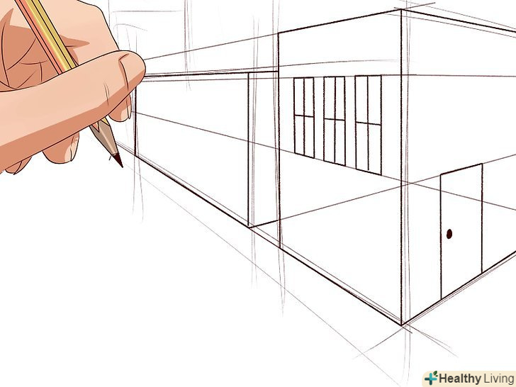 Працюйте над перспективою, щоб надати зображуваним сценам реалістичну глибину. Перспектива робить віддалені предмети маленькими, а сусідні – великими. Щоб малюнки виходили точними, необхідно навчитися правильно відображати перспективу. Один із способів роботи з перспективою-використання точки перспективи. Думайте про неї як про найдальшу точку горизонту подібної сонцю в момент заходу. Намалюйте лінії з цієї точки, щоб використовувати їх як орієнтир для розмітки малюнка. Все, що буде знаходитися ближче до точки перспективи і далі від вас, має бути менше, а все, що буде далі від точки і ближче до вас, має бути більше. Працюйте над перспективою, щоб надати зображуваним сценам реалістичну глибину. Перспектива робить віддалені предмети маленькими, а сусідні – великими. Щоб малюнки виходили точними, необхідно навчитися правильно відображати перспективу. Один із способів роботи з перспективою-використання точки перспективи. Думайте про неї як про найдальшу точку горизонту подібної сонцю в момент заходу. Намалюйте лінії з цієї точки, щоб використовувати їх як орієнтир для розмітки малюнка. Все, що буде знаходитися ближче до точки перспективи і далі від вас, має бути менше, а все, що буде далі від точки і ближче до вас, має бути більше.- Прочертите через точку перспективи дві діагоналі. Якщо розмістити в проміжку між двома діагоналями об'єкти, які однакові за розміром в реальності, на малюнку через перспективи вони будуть здаватися різними. [9]