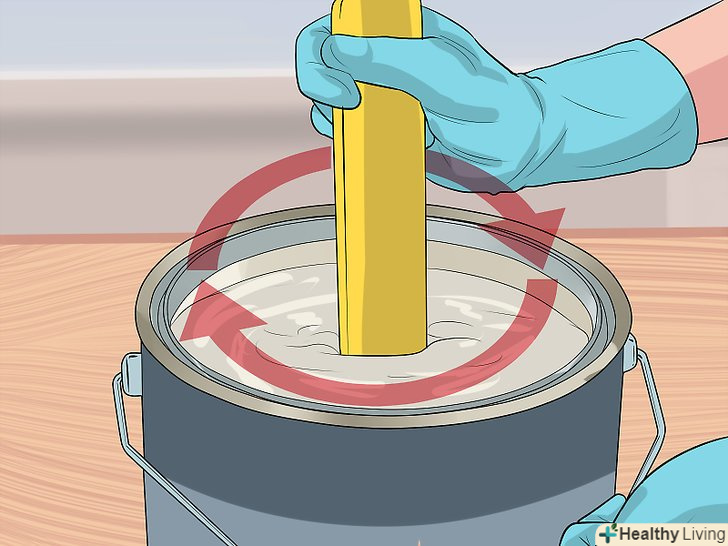 Розмішайте фарбу. за допомогою лопатки для розмішування фарби перешкодьте латексну фарбу протягом 5-10 хвилин. Заважайте фарбу круговими рухами по висхідній і низхідній спіралі. Це дозволить змішати більш важкі і осіли внизу молекули фарби з більш легкими, які залишилися на поверхні. [2]- Іншим методом перемішування фарби служить її неодноразове переливання з однієї ємності в іншу.