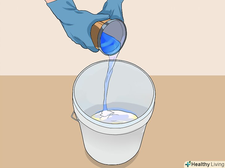 Перелийте фарбу у відро. Якщо вас чекають великі фарбувальні роботи, візьміть 20-літрове відро або навіть більше. Розведення відразу великого обсягу фарби дозволить отримати достатню кількість однорідного матеріалу для майбутньої роботи. [4]- Щоб розвести банку з фарбою меншого обсягу, наприклад, об'ємом 0,5 л, візьміть маленьке відерце.