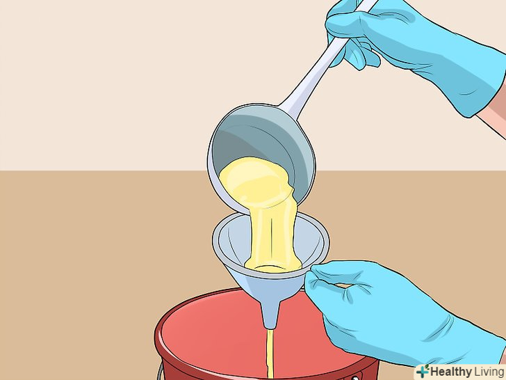 Пролийте фарбу через воронку. Візьміть воронку і тримайте її над відром з фарбою. За допомогою ковшика або черпака зачерпніть фарбу з відра і залийте в воронку. Якщо фарба спокійно протікає через отвір воронки, то вона буде також добре розпорошуватися краскопультом. Якщо фарба не протікає через воронку безперешкодно, поступово додайте в неї більшу кількість води, поки вона не придбає необхідну консистенцію.