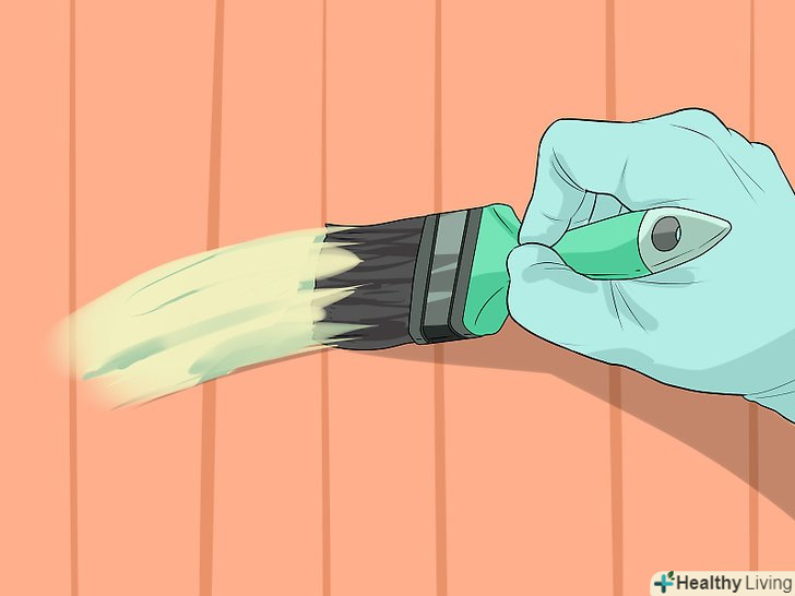 Протестуйте фарбу. за допомогою фарбопульта або кисті пофарбуйте фарбою непотрібну дерев'яну дощечку. Дайте фарбі висохнути, перш ніж наносити зверху другий шар. [8] після того як дощечка буде пофарбована другим шаром і фарба висохне, огляньте отриманий результат. Занадто рідка фарба схильна утворювати патьоки на пофарбованої поверхні, а занадто густа фарба може набувати текстуру апельсинової шкірки. Фарба правильної консистенції буде лежати гладким шаром без патьоків. [9]- При використанні фарбопульта спочатку процідіть фарбу через сито і тільки потім залийте в резервуар. Це дозволить відсіяти з фарби будь-які забруднення, здатні засмітити розпилювач. Закрийте резервуар з фарбою і візьміть в руки фарбопульт. Тримайте розпилювач на відстані 20 см від дощечки, щоб зробити пробне розпилення фарби. Фарба повинна розпорошуватися безперешкодно. [10]