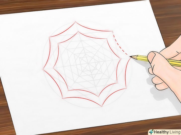 З'єднуйте лінії перевернутими дугоподібними лініями, рухаючись зсередини назовні. З'єднуйте лінії перевернутими дугоподібними лініями, рухаючись зсередини назовні.