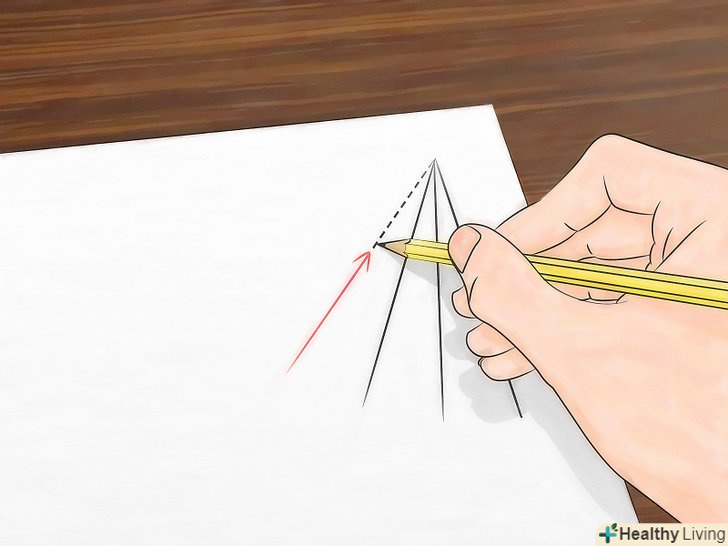 Візьміть олівець і намалюйте загинається вниз лінію, починаючи приблизно сантиметрах в п'яти від правого кута і закінчуючи п'ятьма сантиметрами вниз від кута. Візьміть олівець і намалюйте загинається вниз лінію, починаючи приблизно сантиметрах в п'яти від правого кута і закінчуючи п'ятьма сантиметрами вниз від кута.