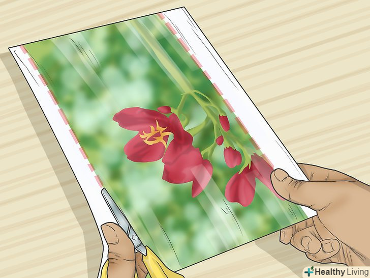 Виріжте зображення за допомогою ножиць. спочатку відріжте з надрукованої фотографії (або зображення з журналу) все зайве. Потім акуратно виріжте саме зображення. Акуратно обріжте будь-які нерівні або гострі кути, залишивши тільки сам малюнок. [4]- Якщо зображення квадратне або прямокутне, то вирізати його не складе труднощів.