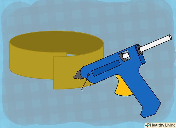 За допомогою гарячого клейового пістолета склейте разом кінці будівельного паперу. Пам'ятайте, у вас є два зайвих дюйма (5см) для того, щоб зробити відповідний розмір до голови.