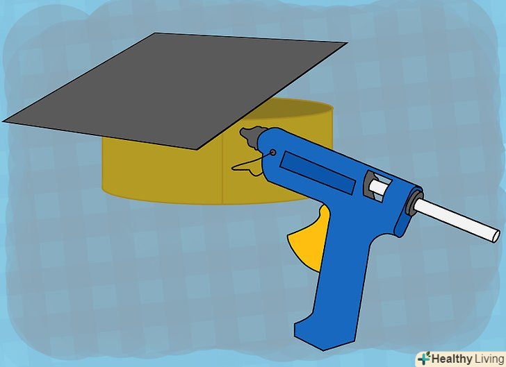 За допомогою клейового пістолета приклейте картон до кола будівельного паперу, щоб сформувати капелюх.