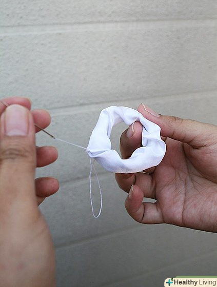 Додайте еластичну гумку. прикріпіть безпечну шпильку до одного кінця гумки і протягніть її через тканинний «тунель». Переконайтеся, що щільно тримайте інший кінець. Скріпіть шпилькою два кінці гумки разом. Зробіть рядок.