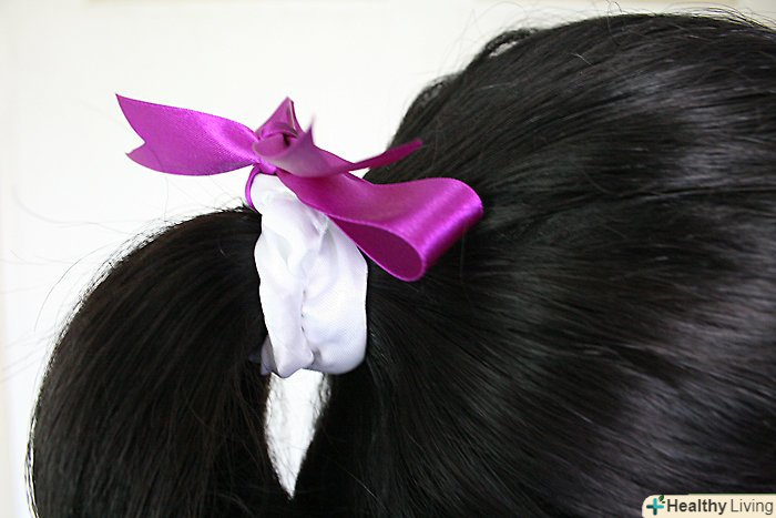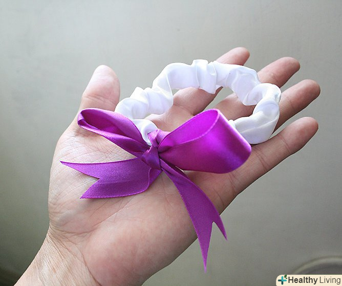 Надіньте скранч! Зав'яжіть ваше волосся звичайною еластичною гумкою, потім вмістіть зверху Саморобний скранч!
