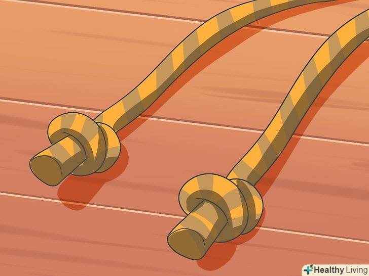 Візьміть дві мотузки і зав'яжіть або оплавте їх на кінцях. це не дасть мотузці протиратися і розплітатися.- Обробка краю називається обметкой. Покладіть мотузку вздовж мотузки. Коли довжина мотузки досягне діаметра мотузки, помноженого на 1,5, зробіть петлю. Мотузка повинна утворити перевернуту букву U. оберніть мотузку мотузкою і протягніть край в петлю на кінці. Потягніть за обидва кінці мотузки, щоб петлі затягнулися. Зріжте кінці мотузки, щоб вони не виступали за краї і щоб кінці виглядали акуратно. [4]