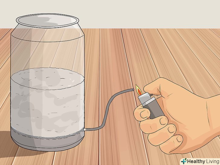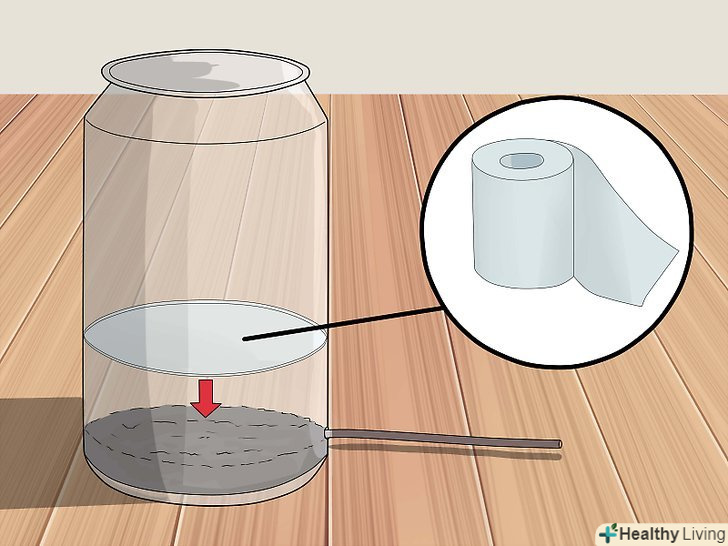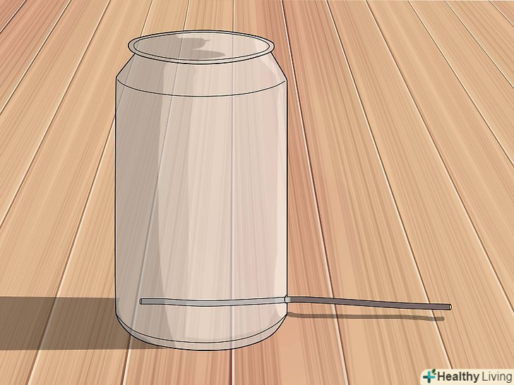 Вставте в отвір в денці гніт довжиною близько 10 см. гніт ви можете купити в інтернеті або в спеціалізованому магазині. Дуже хороші гноти виготовляє компанія Visco.- Після того, як ви вставите гніт, поставте банку на землю.