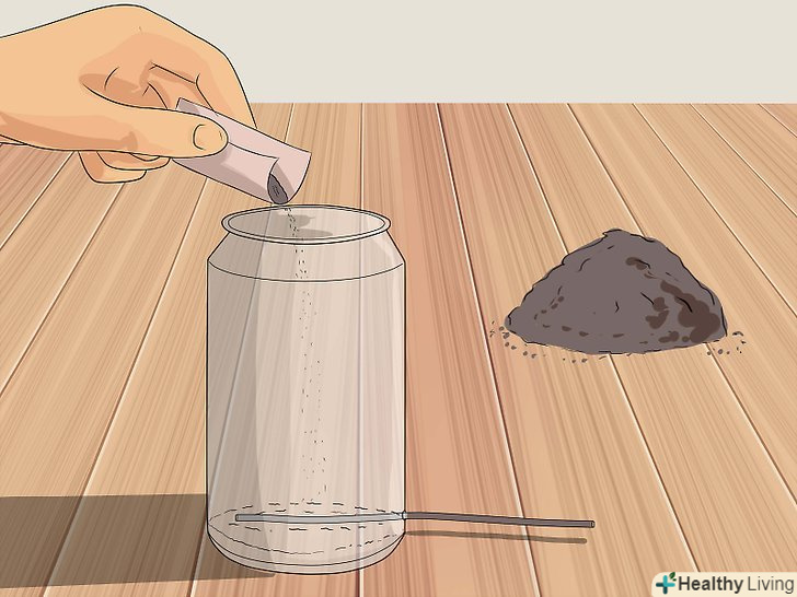 Насипте в банку чорного або бездимного пороху. ви можете купити їх в мисливських магазинах або зробити самим. Перевірте, щоб порох лежав у банку рівномірно. Вам потрібно заповнити її порохом на товщину близько 3 см.- Щоб визначити, скільки вам знадобиться пороху, вам треба заміряти, скільки місця в банку займе 1 грам пороху. Наприклад, для банки діаметром в 15 см (6 дюймів) буде потрібно 87 грамів (2,8 унцій) пороху.