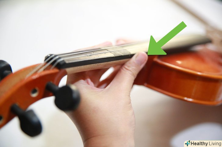 Торкайтеся інструменту руками тільки в потрібних місцях.на шкірі присутні масло і Піт. Вони можуть роз'їдати лак і залишати сліди на поверхні скрипки. Чим менше буде ділянка контакту скрипки зі шкірою, тим довше ваш інструмент збереже своє звучання і прекрасний зовнішній вигляд.- Тренуйтеся правильно піднімати і тримати скрипку, щоб розвинути необхідну звичку і перестати хапати скрипку за корпус.