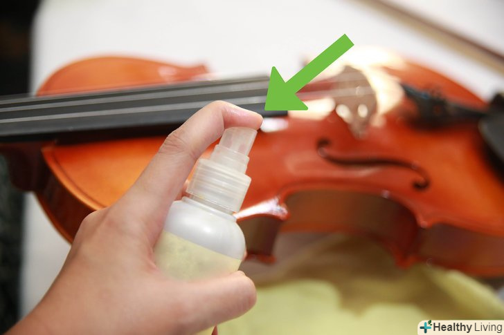 - Якщо вам не вдається просто стерти шар каніфолі на струнах, то використовуйте для цього чистий спирт. Нанесіть на ганчірку кілька крапель спирту і протріть струни, але стежте за тим, щоб спирт не потрапив на інші частини скрипки і не пошкодив лак.[1]
