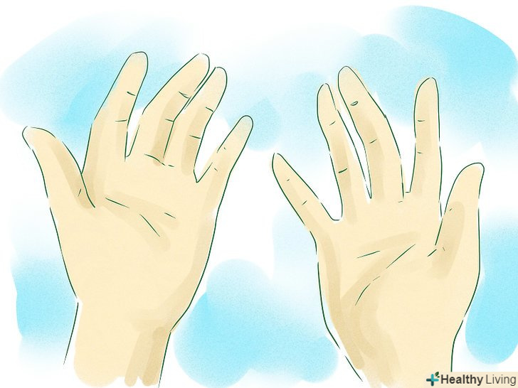 Поставте другу руку в позу, ніби ви збираєтеся нею щось брати. розташуйте всі чотири пальці (крім великого) боком від вас, розгорнувши долоню до свого обличчя, а великий палець залиште на протилежній стороні.