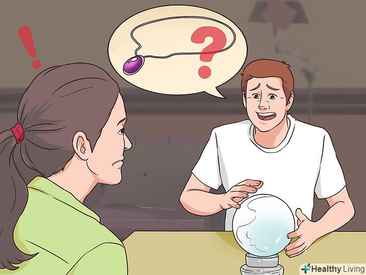 Зверніть увагу на одяг і характерні риси людини. скористайтеся цим, щоб обчислити про нього деякі факти і згадати їх під час сеансу. Головне, уникайте чогось очевидного, до чого об'єкт може причепитися. Наприклад, якщо ви "прочитаєте", що його улюблена група — Metallica, коли він буде сидіти перед вами в майці з логотипом Metallica. Не хвилюйтеся, якщо ваші висновки виявилися невірними, просто продовжуйте сеанс далі. [8]- Так, якщо людина постійно совається на одному місці, а на шиї у нього висить кулон у вигляді серця, під час сеансу можна вставити щось на кшталт: "я відчуваю, що ви-неспокійна людина, проте всі тривоги підуть, коли ви зустрінете свою справжню любов".