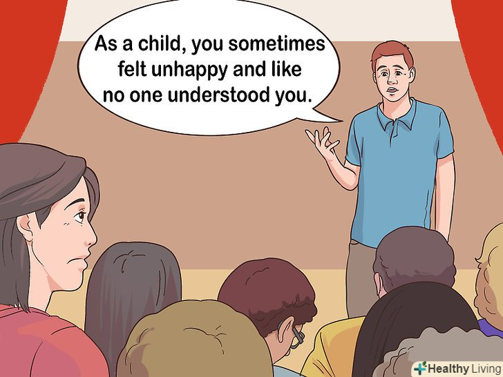Говоріть загальними фразами, які можна застосувати до кого завгодно. це зменшить ризик помилитися. А людина сама зробить всю роботу, підлаштувавши широкі висловлювання під своє життя. Уникайте занадто специфічних деталей, якщо тільки не використовуєте інформацію, надану вам раніше самої "жертвою". [9]- Наприклад, можна сказати:"будучи дитиною, ви іноді відчували себе нещасним, як ніби вас ніхто не розуміє". Це твердження можна застосувати до будь-якої людини (багато людей відчували образу або непорозуміння в певний період дитинства), проте створюється ілюзія його унікальності.