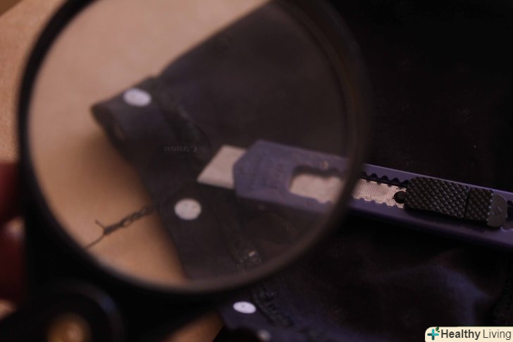 Видобуток "чорного золота". найкраще це зробити за допомогою маленького ножика і лупи. Найзручнішою буде лупа на підставці, щоб обидві ваші руки залишалися вільними – втім, якщо у вас відмінний зір, можете обійтися і без неї. Якщо ви уважно подивіться на шов, ви побачите дві горизонтальних рядки, з'єднаних між собою зигзагом. акуратно розріжте один з горизонтальних стібків, а потім найближчий до нього стібок зигзагоподібної рядки. Тепер потягніть зигзаг, поки нитка не натягнеться. Наступний крок зажадає особливої акуратності. Придивіться і розріжте нитку, що утримує зигзагоподібну рядок. Це повинен бути один-єдиний стібок. Повторюйте ті ж дії, поки не отримаєте нитку потрібної довжини.