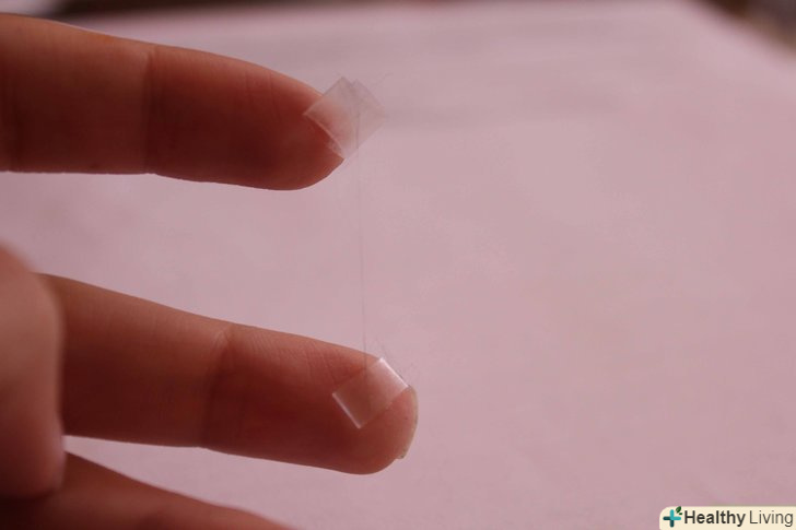 І як же її тепер не втратити? ! Перш ніж відкласти свою невидиму нитку в сторону, приклейте на її кінці по шматочку скотча. Постарайтеся зробити це якомога ближче до кінчиків, щоб зберегти довжину нитки. Кожен шматочок скотча складіть і склейте, щоб він більше ні до чого не прилип.