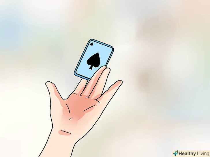 Виконуйте фокуси на спритність рук. такі номери зазвичай показують з відстані близько трьох метрів до глядачів, а сам фокусник часто сидить за столом. [18] для трюку зазвичай використовується простий реквізит на зразок карт, монет та інших дрібничок, невимушені фокуси з якими створюють ілюзію незвичайних переміщень в просторі, так як предмет зникає і з'являється в найнесподіваніших місцях.- Постійно розвивайте дрібну моторику рук. Носіть з собою колоду карт або особливу монетку і постійно розвивайте спритність долонь і пальців, щоб добре виконувати непомітні фокуси з дрібними предметами.